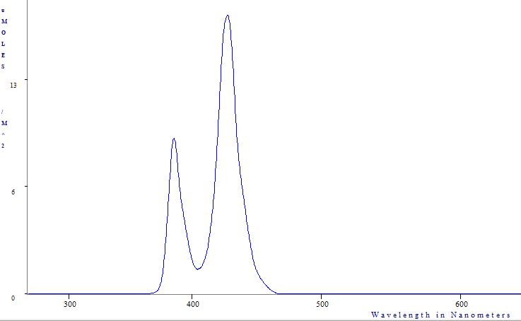 Blue/UV Hybrid- A balanced mix of 430nm violet, 450nm Royal Blue, 380nm UV, and 480nm Cool Blue. Great mix of color pop and brightness.